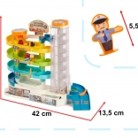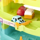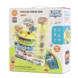 Veľká detská parkovacia garáž so 4 poschodiami, elektrickým aj manuálnym výťahom, svetelnými a zvukovými efektmi a 6 farebnými autíčkami. Skvelá hračka na rozvoj motoriky, logického myslenia a fantázie – ideálny darček pre malých milovníkov áut.