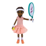 Tenisový model obsahuje ružové šaty, športové spodné prádlo, biele potítka, biele ponožky, oranžové tenisky, bielu čelenku, modrú raketu a loptičku.