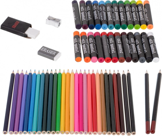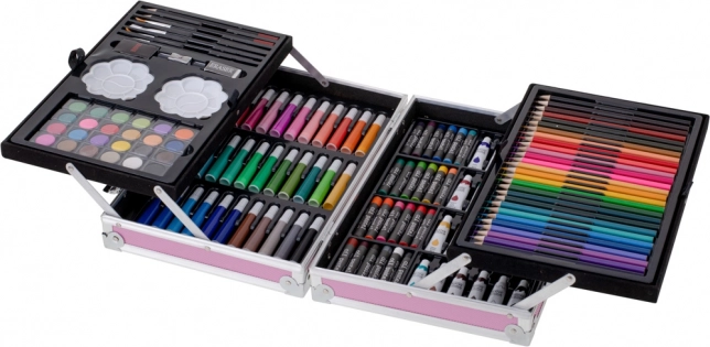 Všetko, čo potrebujete na kreatívne tvorenie, na jednom mieste. Sada kombinuje rôzne techniky – kresbu, kolorovanie aj maľbu. Vďaka bohatej palete farieb ľahko nájdete presný odtieň a môžete naplno vyjadriť svoju predstavivosť. Prenosný kufrík so spoľahlivým držadlom a dvojicou západiek umožní vziať si výtvarné potreby kamkoľvek.