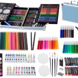 • Kompletná výbava 145 ks: fixky, farebné ceruzky, štetce, ceruzky, gumy, akvarely, farby v tubách, olejové pastely, paletky a strúhadlo.