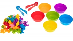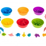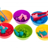 Šesť farebných misiek a 36 figúrok umožní deťom triediť, porovnávať a počítať – skvelý základ pre matematické zručnosti.