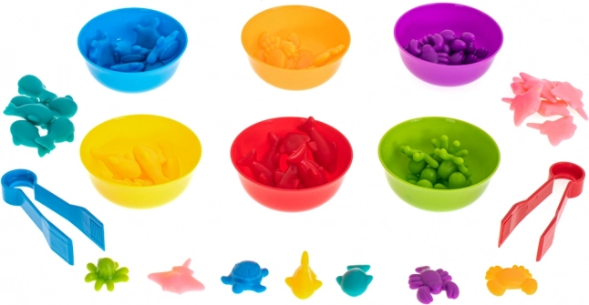 Farebná sada morských zvieratiek pre metódu Montessori podporuje učenie počítania, triedenie podľa farieb a rozvoj jemnej motoriky. V balení nájdete 6 misiek, 2 pinzety a 36 roztomilých figúrok morských tvorov na hravé učenie a nekonečné variácie aktivít.