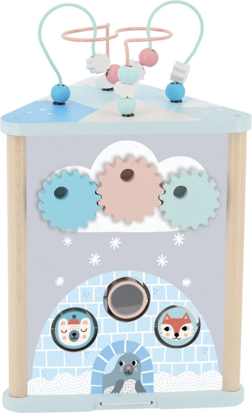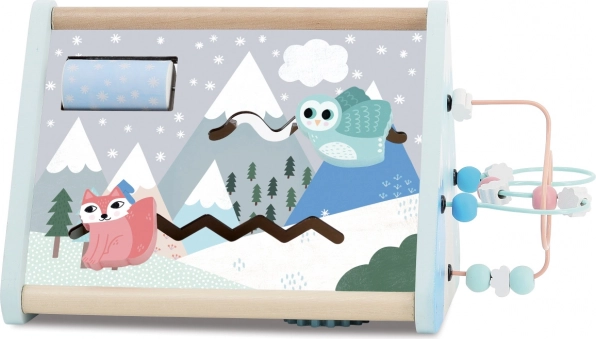 Táto drevená hračka s témou zimného kráľovstva obsahuje niekoľko aktivít, ktoré pomôžu vášmu dieťaťu rozvinúť ich schopnosti: