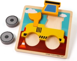 Vkladacie puzzle pre najmenších s motívom bagera, vyrobené z vysoko kvalitných, zodpovedne získaných materiálov. Skvelý nástroj na rozvoj jemnej motoriky, logického myslenia a poznávania tvarov a farieb.