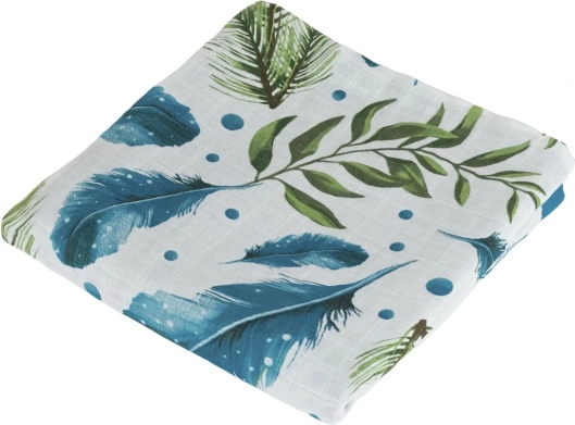 Oblečte svoje bábätko do pohodlia a jemnosti. Táto bambusová mušelínová deka je navrhnutá pre maximálny komfort s krásnym motívom pierok a listov. Vyrobená zo 70% bambusu a 30% bavlny, je ideálna pre horúce dni vďaka svojej priedušnosti a chladivému pocitu.