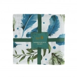 Krásny motív s modrými pierkami a zelenými listami dodá štýl každému miestu, kde deku využijete.
