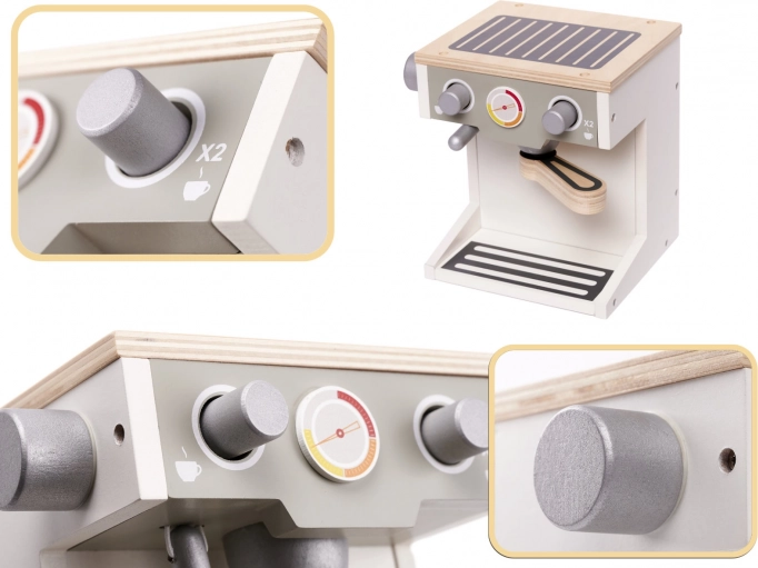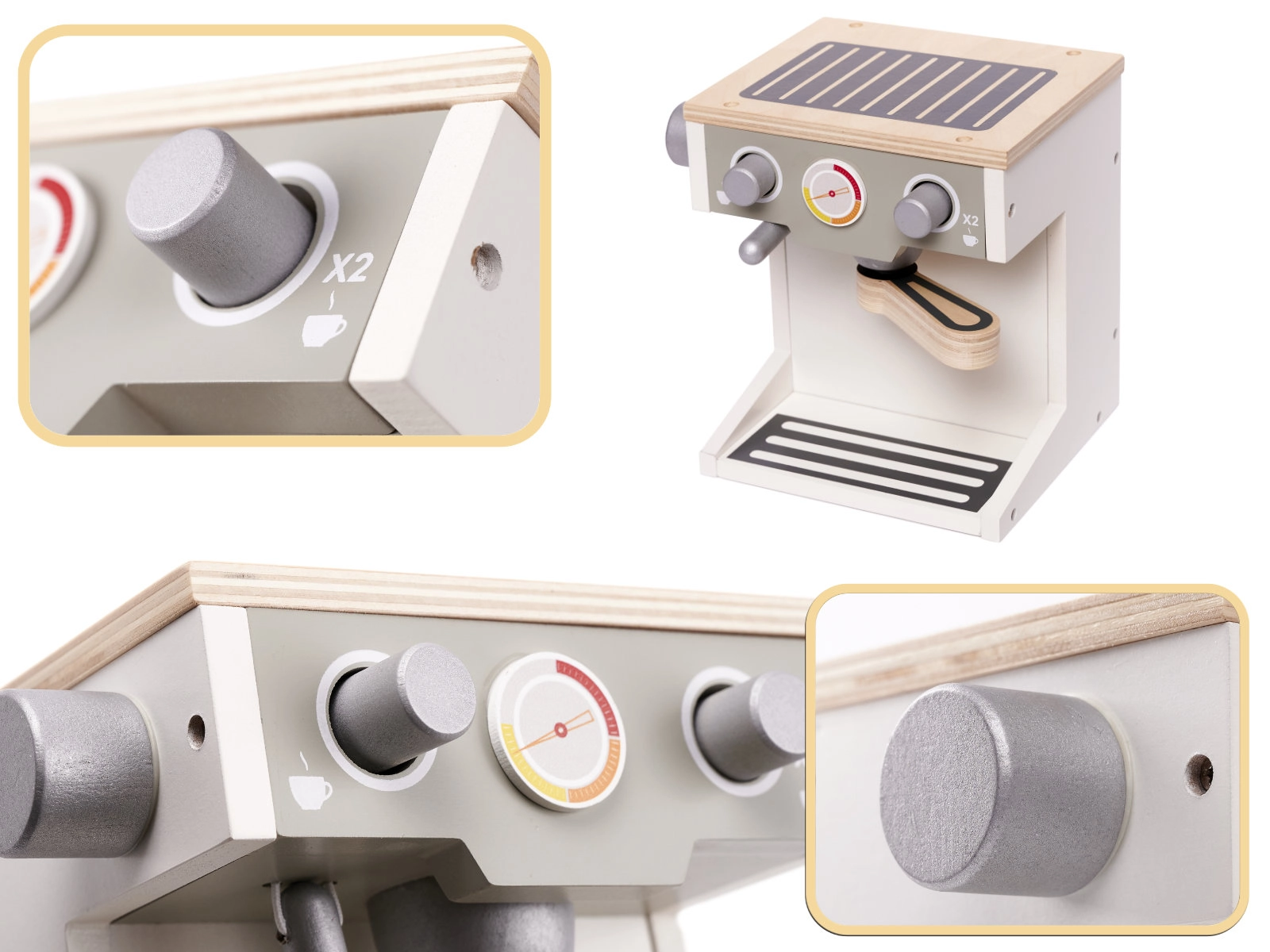 Drevený kávovar pre deti je perfektný spôsob, ako podnietiť ich kreativitu a pomôcť im naučiť sa napodobňovať dospelých pri príprave kávy. Tento výnimočný kávovar zahŕňa realistické funkcie, ako je portafilter a nastaviteľné gombíky pre voľbu druhu kávy. Deti môžu dokonca pripravovať biele kávy vďaka integrovanému napenovaču mlieka.
