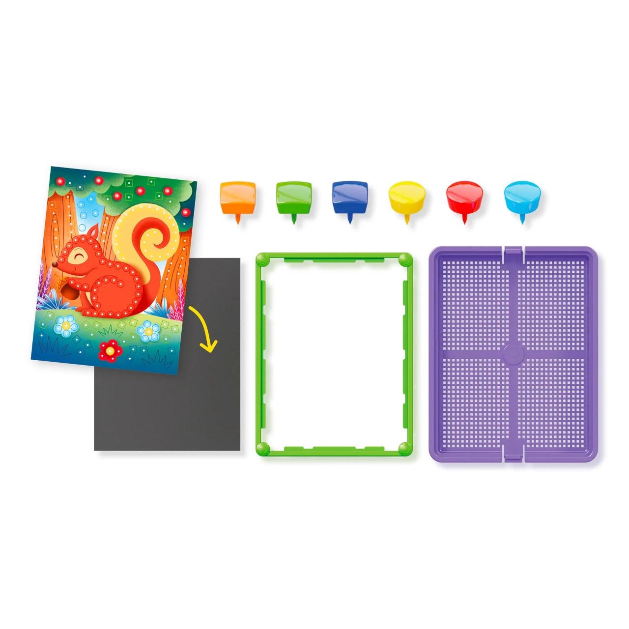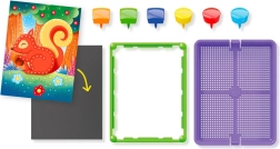 Táto farebná kolíčková mozaika zaujme deti možnosťou vytvárať obrázky z pripravených kariet aj vlastných návrhov. Vďaka intuitívnemu zasúvaniu kolíčkov do podložky deti trénujú úchop, trpezlivosť a vizuálne vnímanie. Robustné plastové diely a rám zabezpečujú stabilitu a pohodlné prenášanie.