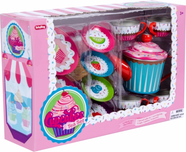Celý set je navrhnutý s jasnými farbami a motívmi zdobených muffinov, čo z neho robí perfektnú voľbu pre imaginárne čajové posedenia.