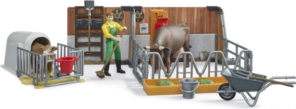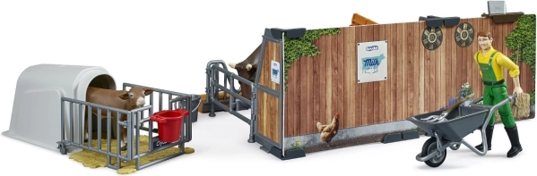 Umožnite deťom stať sa malými farmármi s touto detailnou farmárskou sadou. Sada zahŕňa dva kotce: jeden pre teľa a väčší pre kravu, oba vybavené napájadlom a kŕmidlom. Deti si užijú hranie s pohyblivou figúrkou farmára a realistickými nástrojmi, čo im priblíži každodenný život na farme.