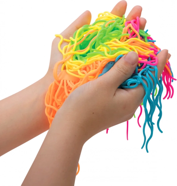 NEE DOH NOODLIES sú hebké, pružné a neuveriteľne zábavné „rezance“, ktoré možno donekonečna naťahovať, krútiť aj splietať. Skvele fungujú ako antistresová fidget hračka – uľavujú od napätia, zlepšujú koncentráciu a poskytujú príjemný hmatový zážitok bez neporiadku.