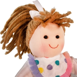 Mäkké látkové telíčko, vyšívané oči a jemné vlásky z priadze poskytujú bezpečie aj pre najmenšie deti. Ideálna ako prvá maznacia bábika.