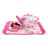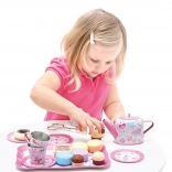 Kompletný servis s kanvičkou, šálkami, podšálkami, táckou a poschodovým stojanom na cukrovinky – všetko pre realistickú čajovú párty.
