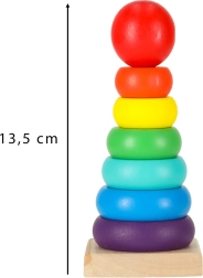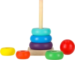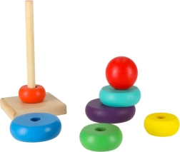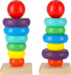 Drevené hračky, známe svojim jednoduchým dizajnom, posilňujú kreativitu a intelektuálny rozvoj detí. Farebná skladacia veža ponúka nielen zábavu, ale tiež podporuje rozvoj logického a kreatívneho myslenia. Kladenie krúžkov na tyč zlepšuje motoriku a pomáha učiť farby.