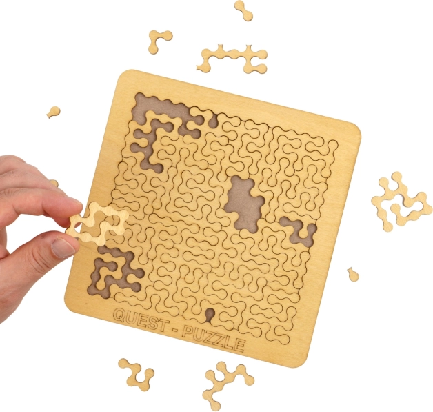 Toto dizajnové drevené puzzle je výzvou pre každého, kto miluje múdre hlavolamy. Každý krok k vyriešeniu je o niečo náročnejší a cesta k dokončeniu vyžaduje premyslenú stratégiu, trpezlivosť a pozorné oko. Vďaka pevnému materiálu a presnému laserovému výrezu dieliky perfektne lícujú a skladanie je plynulé a príjemné.