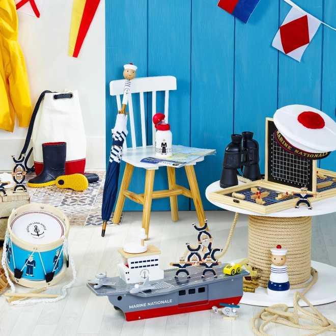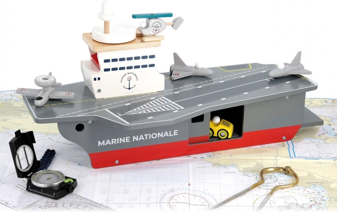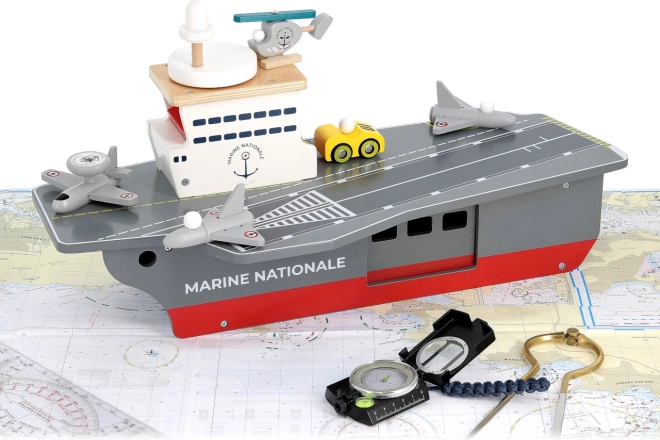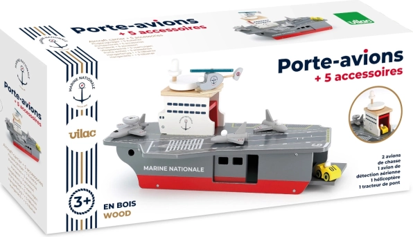 Táto precízne spracovaná drevená lietadlová loď verne napodobňuje skutočné nosiče lietadiel vrátane označenia Marine Nationale. Je vyrobená z odolnej, a pritom ľahkej preglejky, takže je stabilná a pohodlne sa s ňou manipuluje aj menším deťom. Realistické maľované detaily a premyslené prvky podnecujú predstavivosť a prinášajú autentický námorný zážitok.