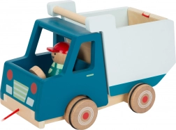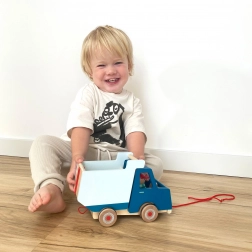 Tento moderný drevený sklápač je perfektnou hračkou pre malých staviteľov. Je vybavený korbou, ktorú je možné úplne vyklopiť, a vodičom, ktorý sa počas jazdy pohupuje, čo prináša extra zábavu. Vďaka pogumovaným kolieskam sa pohybuje ticho a plynule.