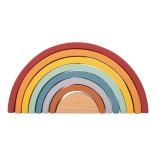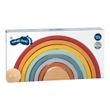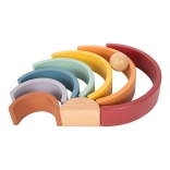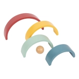 Toto drevené dúha poskytuje skvelú príležitosť pre deti rozvíjať svoju predstavivosť a motorické zručnosti. Obsahuje 8 farebných oblúkov a drevenú guľôčku, ktorá môže slúžiť ako výuková pomôcka pre pochopenie rozmerov a farieb. Hračka je vyrobená v súlade s Montessori pedagogikou a je ideálna pre voľnú hru.
