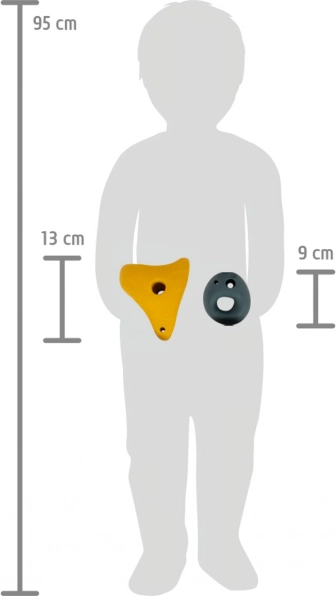 Úchyty sú vhodné pre deti, povrch uľahčuje uchopenie a podporuje rozvoj sily, rovnováhy a vytrvalosti. Môžete ich kombinovať s ďalšími produktmi zo série Adventure pre vytvorenie vlastnej gymnastickej telocvične.