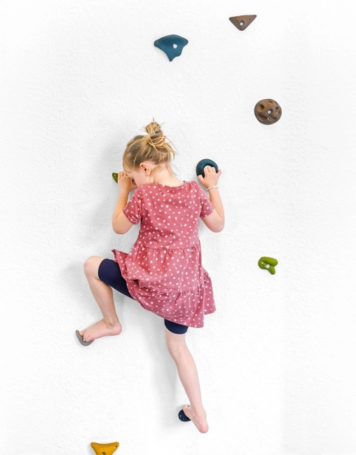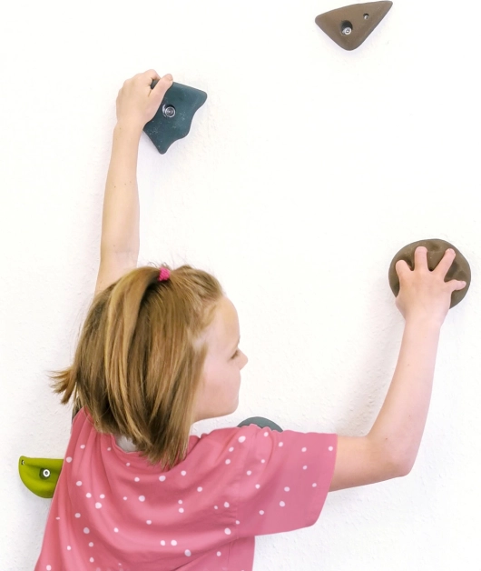 Úchyty sú navrhnuté tak, aby sa neotáčali, čím zaisťujú maximálnu bezpečnosť pre malých horolezcov.