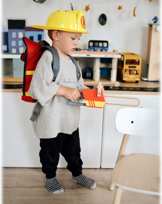 Objavte robustnú drevenú motorovú pílu s hasičskou tematikou, ktorá deťom ponúkne realistickú hru na hasičov. Vďaka veľkej ergonomickej rukoväti sa skvele drží v detských rukách a naťahovacia štartovacia šnúrka so zvukom a vibráciami umocní zážitok z hry. Perfektný doplnok k hasičskému batohu pre malých záchranárov.