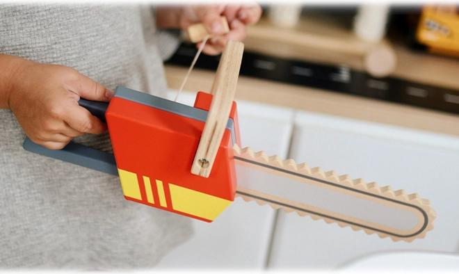 Táto kvalitná detská motorová píla z dreva kombinuje odolné spracovanie a bezpečný dizajn na každodenné hranie. Výrazné červené a žlté prvky s realistickým tvarom píly podnecujú fantáziu a rozvíjajú rolovú hru aj jemnú motoriku.