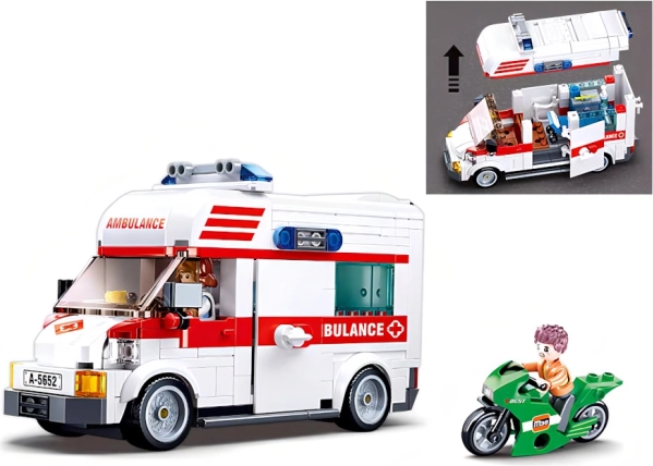 Sada Sluban Town sanitka obsahuje 328 stavebných dielikov, tri detailné figúrky s otáčavými a výkyvnými časťami a jasný návod vo farebnej krabici. Skvele sa kombinuje s ďalšími stavebnicami, takže rozšírite svoje mesto o prepracovanú záchrannú službu.