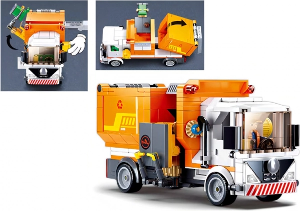 Súčasťou setu je pracovná figúrka, smetná nádoba a premyslené detaily vozidla vrátane nakladacieho mechanizmu na „zvoz odpadu“. Vďaka kompatibilite s LEGO, Cobi, Mega Bloks a ďalšími značkami môžete ľahko rozšíriť svoje mesto a vymýšľať vlastné príbehy.