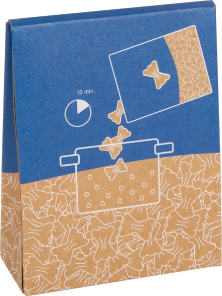 Kartónová krabička sa ľahko otvára a zatvára a na zadnej strane ponúka zrozumiteľný obrázkový postup „varenia“.