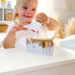 Small foot prináša do sveta detí zábavu s realistickými drevenými nanukmi, ktoré sú perfektným doplnkom do detských predajných stánkov a kuchýň. Táto sada obsahuje tri nanuky v obľúbených príchutiach – jahoda, vanilka a čokoláda. Deti sa môžu tešiť na dlhotrvajúcu zábavu pri hre a zároveň sa učiť pomocou interaktívnej hry.