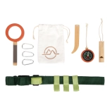 Vydajte sa na nezabudnuteľné dobrodružstvá s opaskom plným vybavenia. Deti budú nadšené odolným pásom, ktorý zahŕňa drevíkovú píšťalku, lupu, pinzetu, kompas, lano a textilné vrecko. Všetko je ľahko pripevniteľné pomocou očiek a karabín.