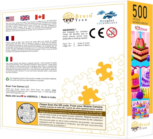 Puzzle V Cukrárni od Brain Tree prináša unikátny zážitok vďaka náhodne rezaným dielikom, ktoré pridávajú skladaniu na dobrodružnosti. Každý dielik je originál, čo zaručuje zábavu pri každom skladaní. Matná úprava umožňuje pekné zobrazenie aj pri meniacej sa svetelnosti.