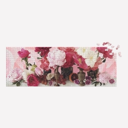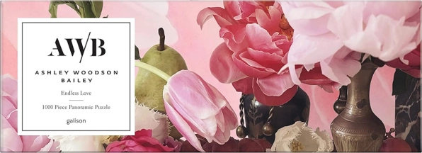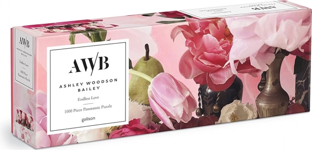 Panoramatické puzzle Endless Love prináša elegantné kvetinové zátišie plné tulipánov a pivoniek v jemných odtieňoch ružovej a zelenej. Vďaka prvotriednej tlači a matnému povrchu vyniknú detaily aj sýtosť farieb, takže skladanie je rovnako krásne ako hotový obraz. Autorkou je americká výtvarníčka a fotografka Ashley Woodson Bailey, preslávená svojimi vycibrenými botanickými kompozíciami.
