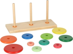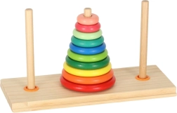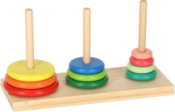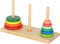 Táto nadčasová logická hra trénuje trpezlivosť a sústredenie: úlohou je preniesť všetky kotúče z prvej tyče na poslednú tak, aby boli opäť zoradené od najväčšieho po najmenší – vždy je možné presunúť iba jeden kotúč a menší kotúč nesmie ležať na menšom. Znie to jednoducho, ale preverí deti aj dospelých.