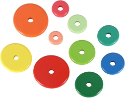 - Motorika a koordinácia – navliekanie kotúčov podporuje zručnosti „ruka–oko“.