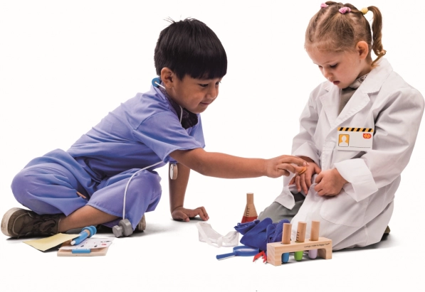 - Zmierňuje strach z lekára vďaka prirodzenému zoznamovaniu s pomôckami.
