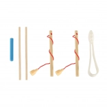 - 1× podstava, 2× prút, 2× paličky, 4× silikónová miska, 10× drevená gulička, 12× rybička, 17× húsenica, 1× hracia kocka, 16× figúrka v 4 farbách, 1× pinzeta