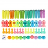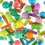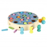 Vďaka veľkému množstvu dielikov je hra ideálna aj pre viac detí súčasne – jedno loví rybičky, druhé zbiera húsenice a ďalšie triedi guličky do silikónových misiek. Bezpečné materiály a hladko brúsené drevo zaisťujú pohodlné a bezstarostné hranie.