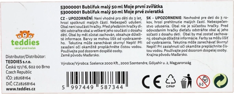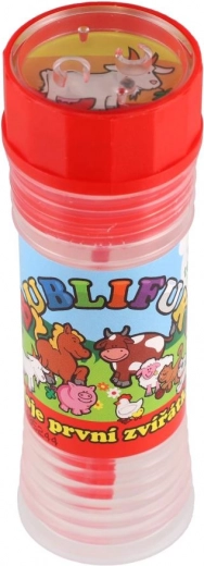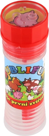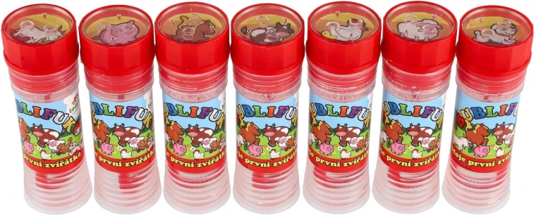 Zábavný bublifuk s motívom Moje prvé zvieratká poteší každé dieťa. Obsahuje 50 ml bublinkovej tekutiny, vo viečku je integrovaná hra a fúkadlo je súčasťou viečka. Ideálny na oslavy, vonkajšie hranie aj drobné odmeny. Vhodné od 6 rokov.