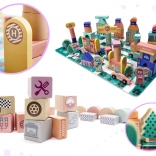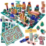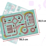 Každé mesto potrebuje ulice a autá – a tento set obsahuje puzzle, ktoré keď sú zložené, vytvoria hraciu plochu s traťou. Nájdete tu rôzne prvky ako budovy, postavy a vozidlá. Kocky sú vyvedené v pastelových farbách, čo nielen podnecuje zrakové vnímanie dieťaťa, ale aj jeho logické a netradičné myslenie.