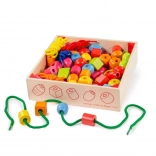 S touto univerzálnou sadou si deti ľahko vyrobia náhrdelníky, náramky či napríklad obojok a vodítko pre plyšového maznáčika. Farebné koráliky s rôznymi tvarmi sa dobre držia, majú príjemne zaoblené hrany a približnú veľkosť 2 × 2 × 2 cm, čo z nich robí ideálnu pomôcku na nácvik navliekania a koordináciu oko–ruka.