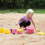 Obsahuje všetko potrebné pre hru na pláži alebo na pieskovisku:
