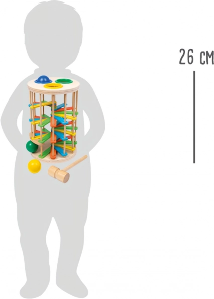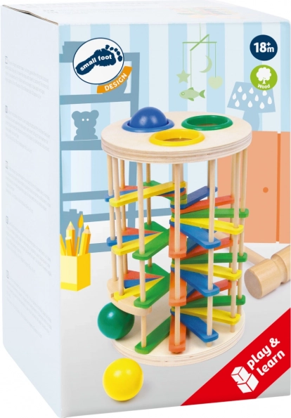Zatĺkačka veža s guľôčkami od Small Foot je dokonalá hračka pre rozvoj motorických schopností detí. Skladá sa z veže, kde deti zatĺkajú 3 farebné gule cez plastové krúžky, a sledujú, ako gule padajú dole po schodisku a vydávajú cvakavý zvuk.