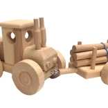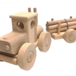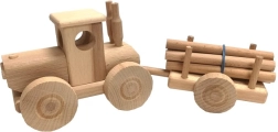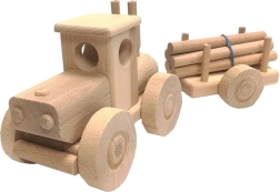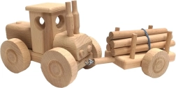 Vďaka zaobleným hranám a starostlivému lešteniu je hračka príjemná na dotyk a bezpečná pre deti od 3 rokov. Rotujúce kolieska a funkčné zapojenie prívesu podporujú rozvoj jemnej motoriky, fantáziu aj rolové hry na farmára a lesnú techniku.