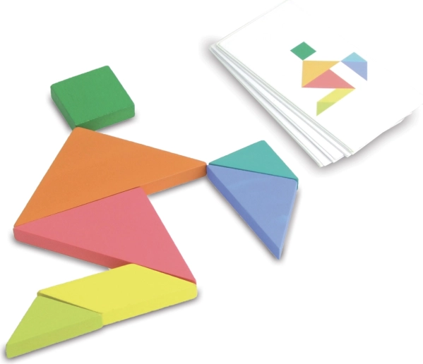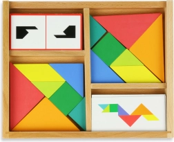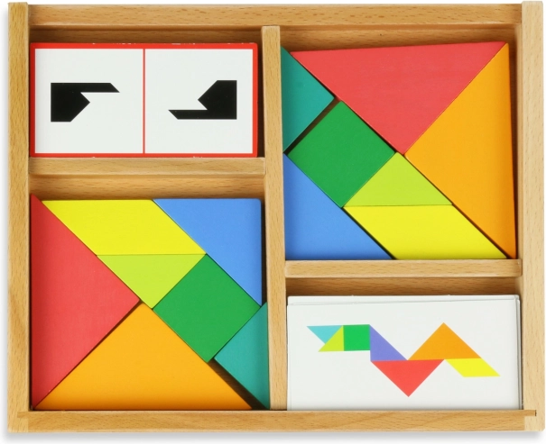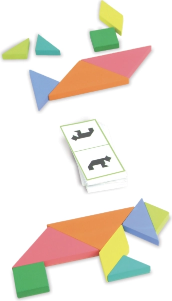 Zábavná a chytrá hra pre 1–2 hráčov: kto ako prvý zloží obrazec podľa kartičky, vyhráva! Viac než 100 kartičiek, 4 úrovne náročnosti a 2 kompletné sady tangramov z kvalitného dreva. Skvele trénuje logické myslenie a priestorovú predstavivosť u detí od 5 rokov aj dospelých.