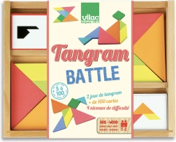 Súboj tangramov od značky VILAC je rýchla a napínavá stolová hra, ktorá rozvíja logiku, koncentráciu a tvorivosť. Cieľom je čo najrýchlejšie poskladať farebné dieliky do siluety zobrazenej na kartičke. Vďaka rôznym stupňom náročnosti si hru užije celá rodina.