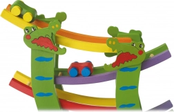 Zelené bočnice v tvare krokodílov a pestré farby podporujú vizuálne vnímanie a robia z dráhy atraktívnu dekoráciu aj hračku.