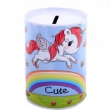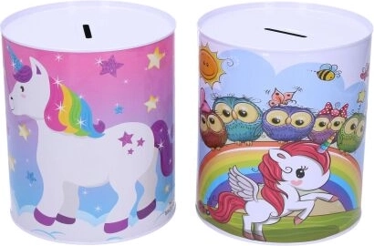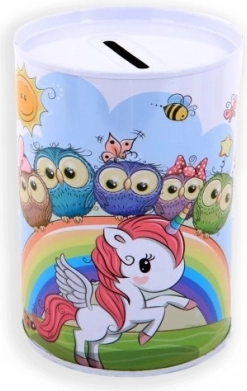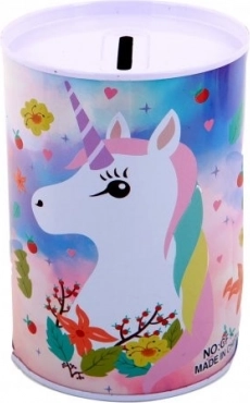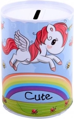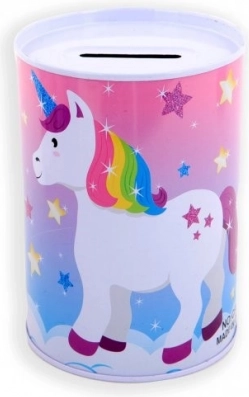 Táto kovová pokladnička s motívom jednorožca je ideálna pre deti, ktoré chcú začať šetriť peniaze na svoju obľúbenú hračku. Vyniká dekoratívnym dizajnom a praktickým otvorom na vrchnej časti na vkladanie mincí.