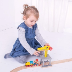 Tento veľký drevený žeriav od Bigjigs Rail je ideálnym doplnkom pre každú železničnú stavebnicu, umožňujúci jednoduchú manipuláciu s tovarom vďaka magnetickému háku. Je kompatibilný so všetkými drevenými vláčikodráhami.