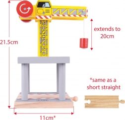 Žeriav možno ľahko kombinovať s ostatnými drevenými vláčikodráhami na trhu, čo z neho robí univerzálnu hračku.